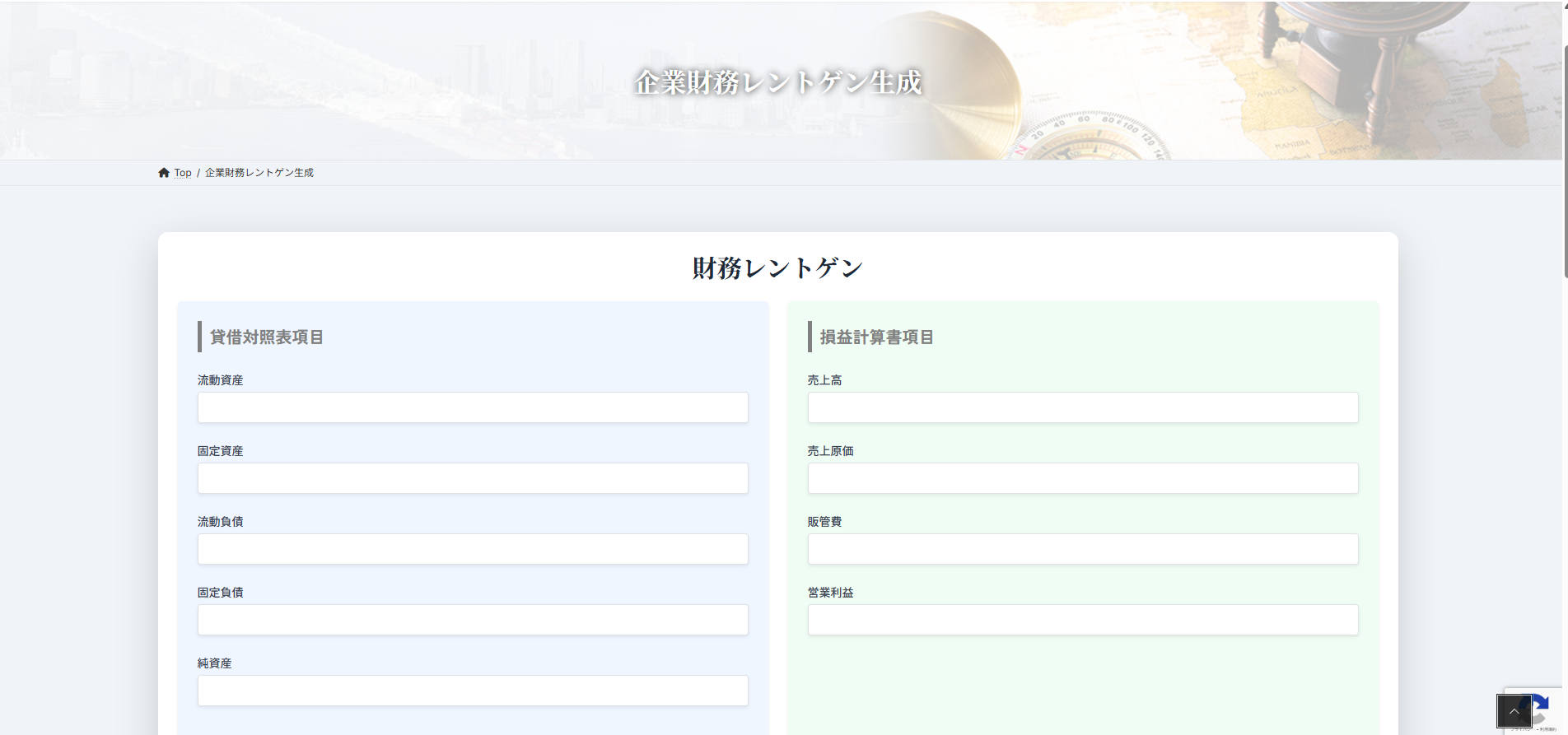 決算書上の貸借対照表、損益計算書の数字を入力することで、ブロック図(面積図)を生成してくれます。